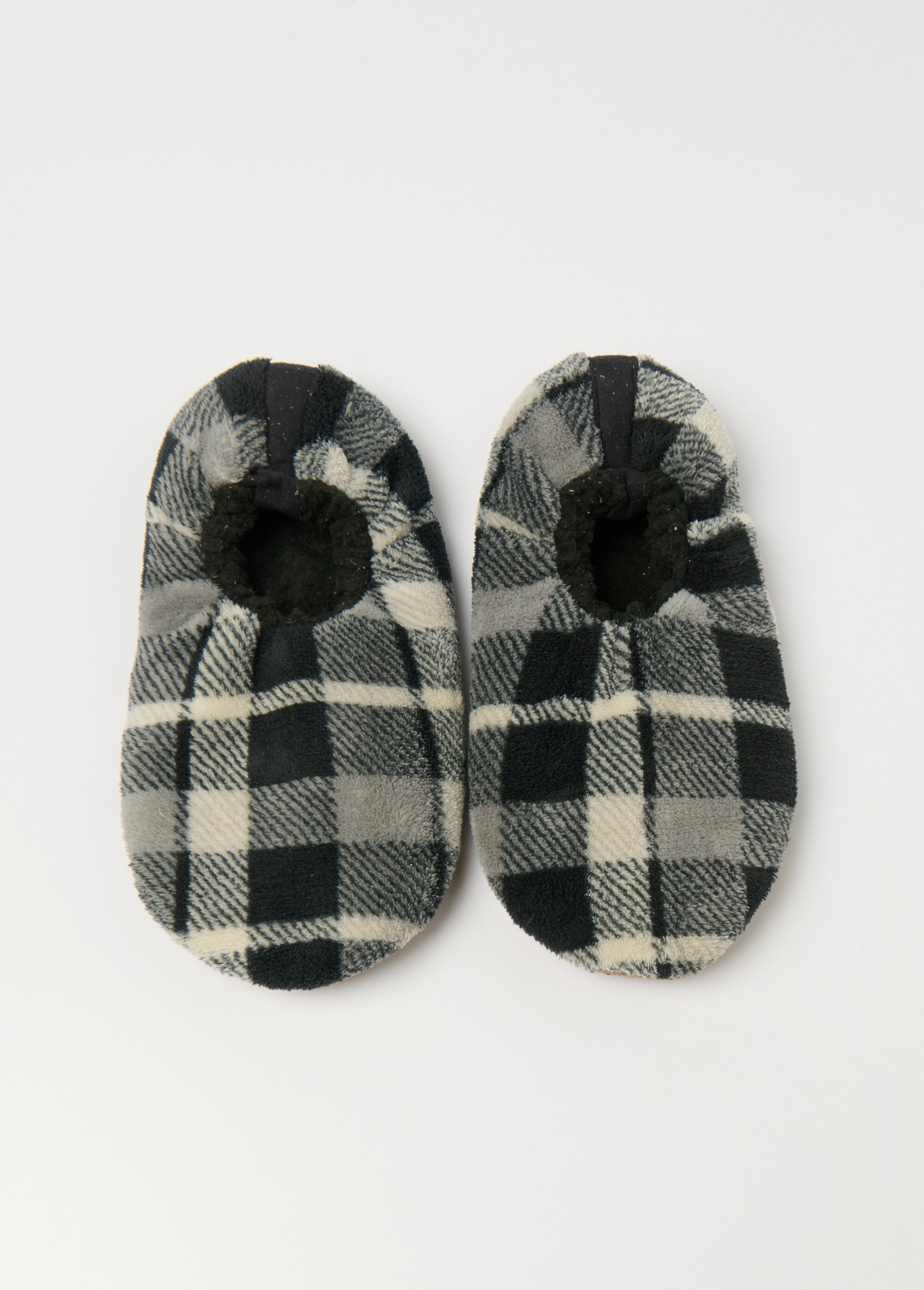 Pantuflas cálidas, antideslizantes y forradas.  Azulejos grises