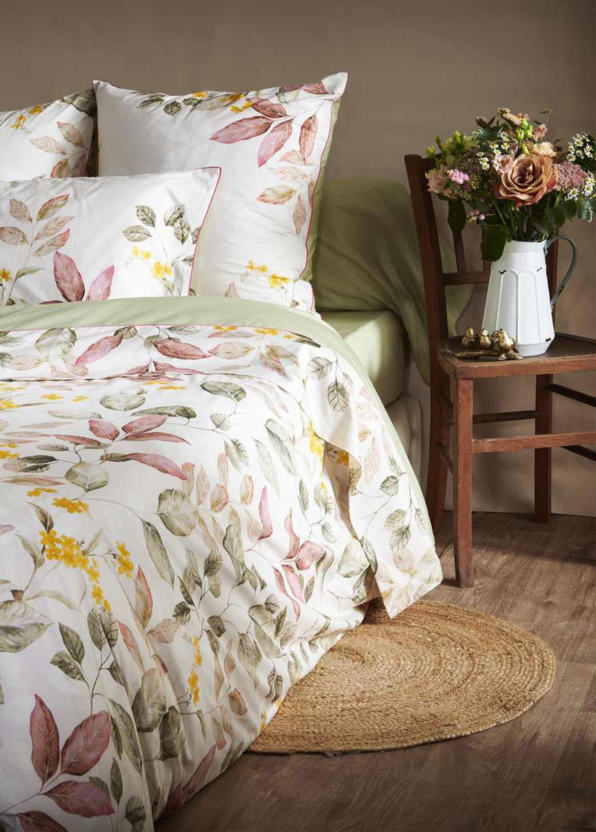 Descubra la colección Maria, una combinación perfecta de elegancia atemporal y diseños florales inspiradores. Confeccionada cuidadosamente con algodón percal de 80 hilos, esta gama de ropa de hogar encarna suavidad y comodidad. Los sutiles tonos empolvados y salvia evocan la tranquilidad de un jardín otoñal, mientras que las delicadas hojas otoñales y las soleadas flores amarillas añaden un toque cálido y vigorizante. Detalles de la sábana bajera: • Gorro de 35 cm • liso verde salvia Déjate seducir por la elegancia floral de María, fuente inagotable de inspiración para crear un verdadero capullo de relajación y belleza.